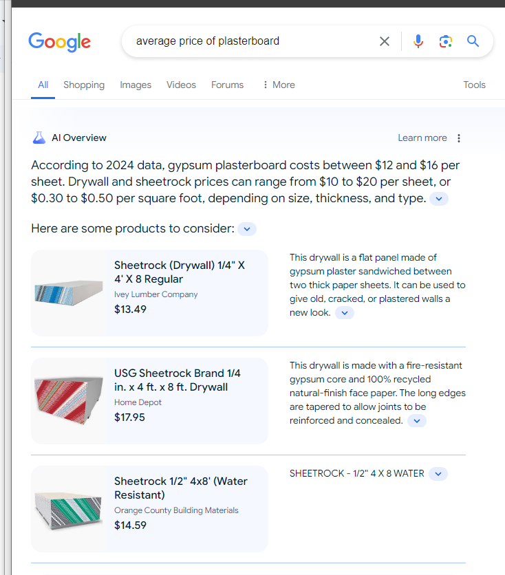 Představte si situaci, kdy výsledek z AI bude dostatečný na to, aby člověk nikam dál neklikal. Prostě dotaz “cena sádrokartonu” (či cokoliv jiného) bude napsána přímo v textu. Půjde si rovnou zobrazit si více obsahu, doptat se AI dál, nebo i objednat.