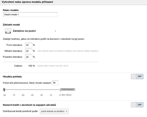 Obrázek 8: Zakládání nového atribučního modelu založeného na pozici