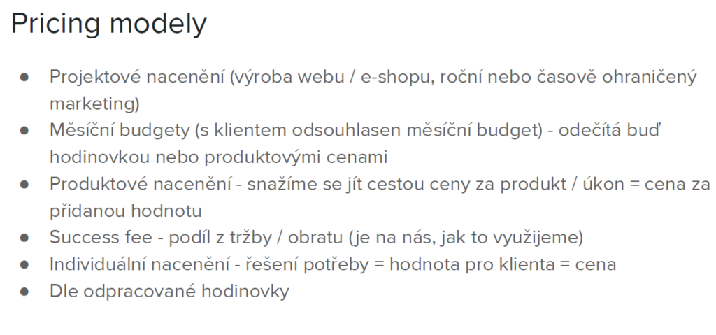 - Cenová strategie: Zvýšit cenu u každé nové zakázky