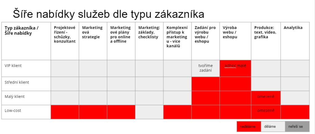 Chcete pomoci s marketingovou strategií a sestavením marketingového mixu? Můžu vám pomoci například přes workshop marketingové strategie. Podívejte se na ukázku mého frameworku.