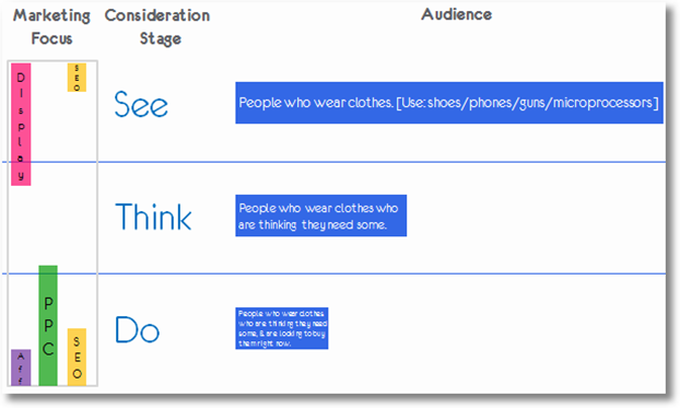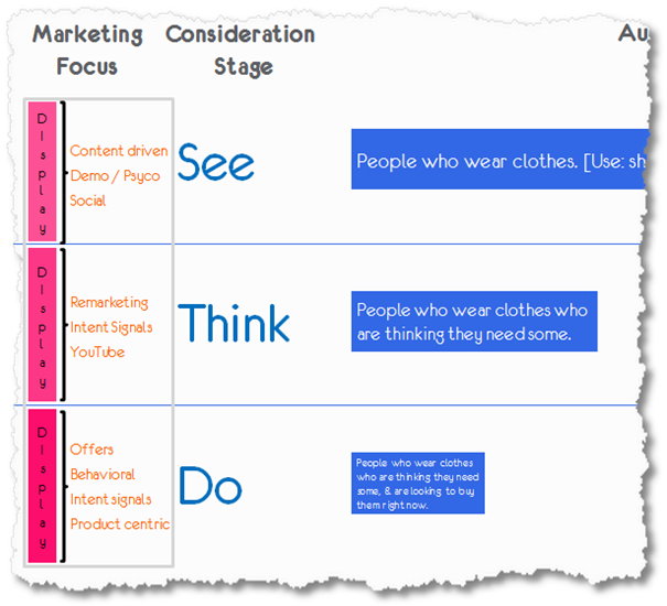 Vezměme si jako příklad růžový box na obrázku – display reklama je zaměřená pouze na skupinu v rozhodovací fází See tzn. všechny, co nosí oblečení.