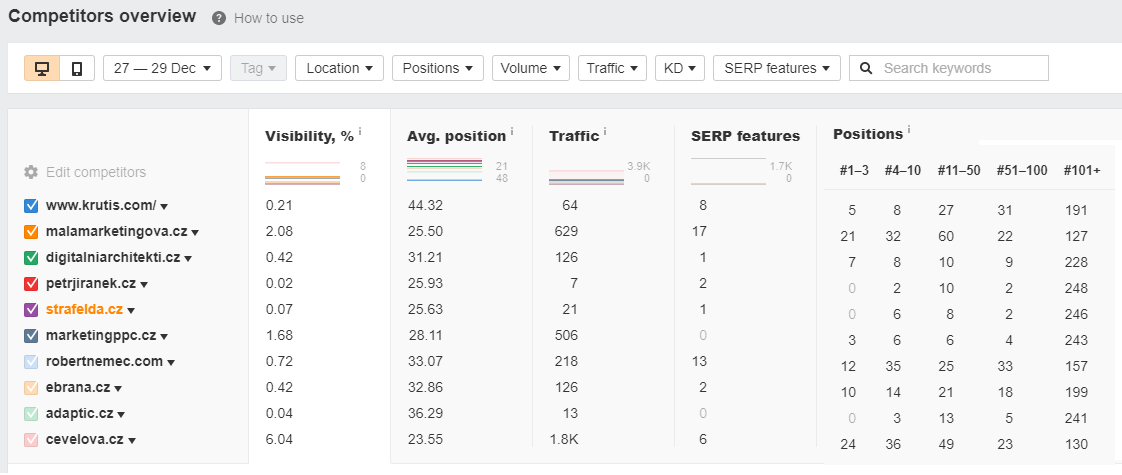 Když jsem si ještě reporty v roce 2015 musel dělat ručně získat ze Semorua Collabimu, pak mi pro mou doménu vyšel tento report konkurence.