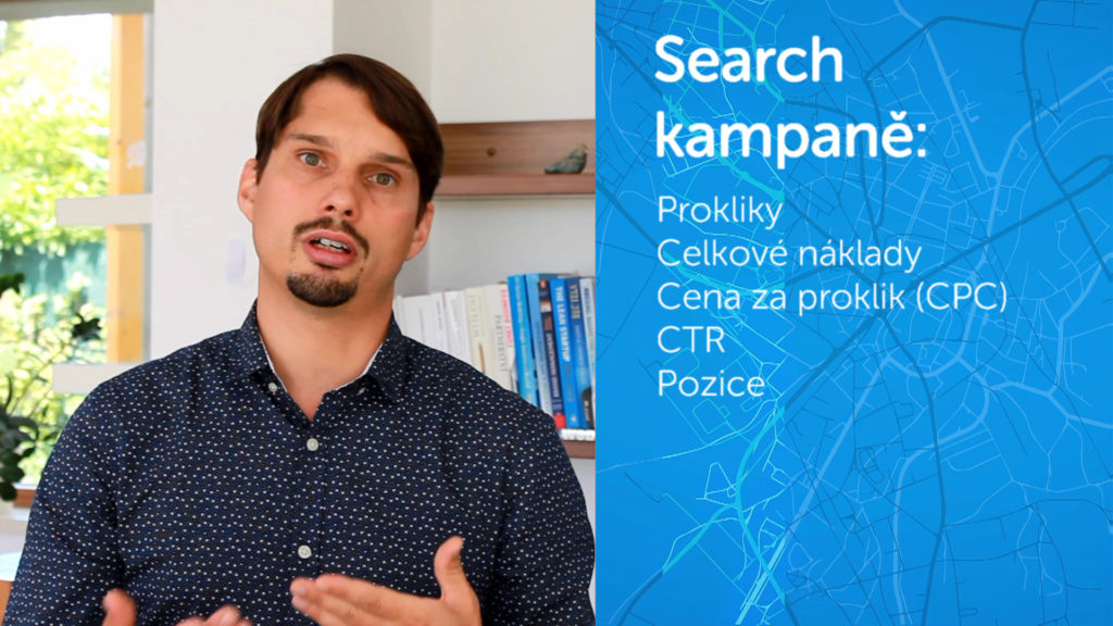 Primární rozdělení máme. Co nás tam zajímá? Kromě prokliku tady vidíme celkové náklady, které nás to stojí, a vyplývající cenu za proklik, celkové náklady na tu kampaň, zajímá nás obecně click through rate a pozice u searchových kampaní.