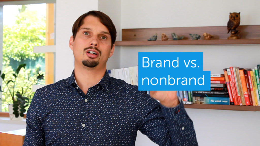 Takže začínáme tím, že vidíme oddělená čísla těchto tří skupin. U searchovým kampaní nás ještě zajímá oddělení brandových kampaní od těch nebrandových. Proč? Protože brand má velmi dobrou výkonnost, má nízkou cenu za konverzi, nízkou cenu za proklik, velmi dobrý click through rate, a neměli bychom ho směšovat s ostatními produkty.