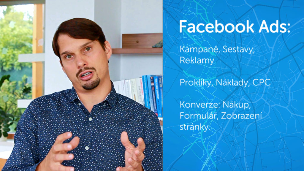 Pak máme placené reklamy. U FB Facebook Ads, které cílí jak na FB stránku, tak na Instagram, a tam nás zajímají metriky podobné v PPC, jako v Adwords nebo v Skliku. Máme tam jednotlivé reklamy, pro ně sestavy, a u nich čísla jako prokliky, náklady, z toho vyplývající cena za proklik, ale vidíme třeba i konverze. Ty můžou být různého druhu, přes Facebook Pixel si můžeme vybrat různé typy konverzí, například počet nákupu.
